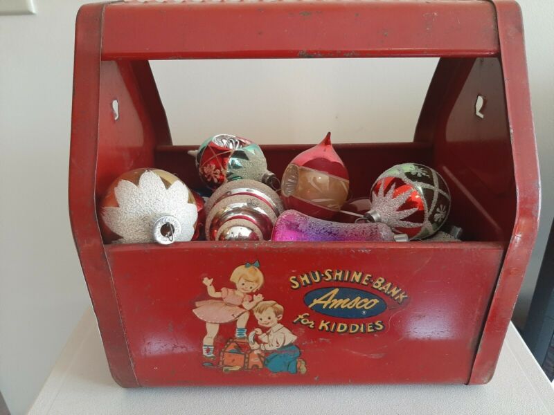Title (ebay affiliate link): Vintage Childs Metal Red Toy Amsco shu-shine bank carrier Christmas display