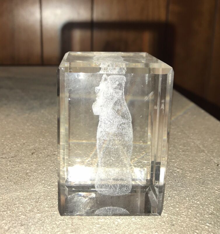 Title (ebay affiliate link): Crystal Glass Coca Cola Bottle Halogram Paperweight