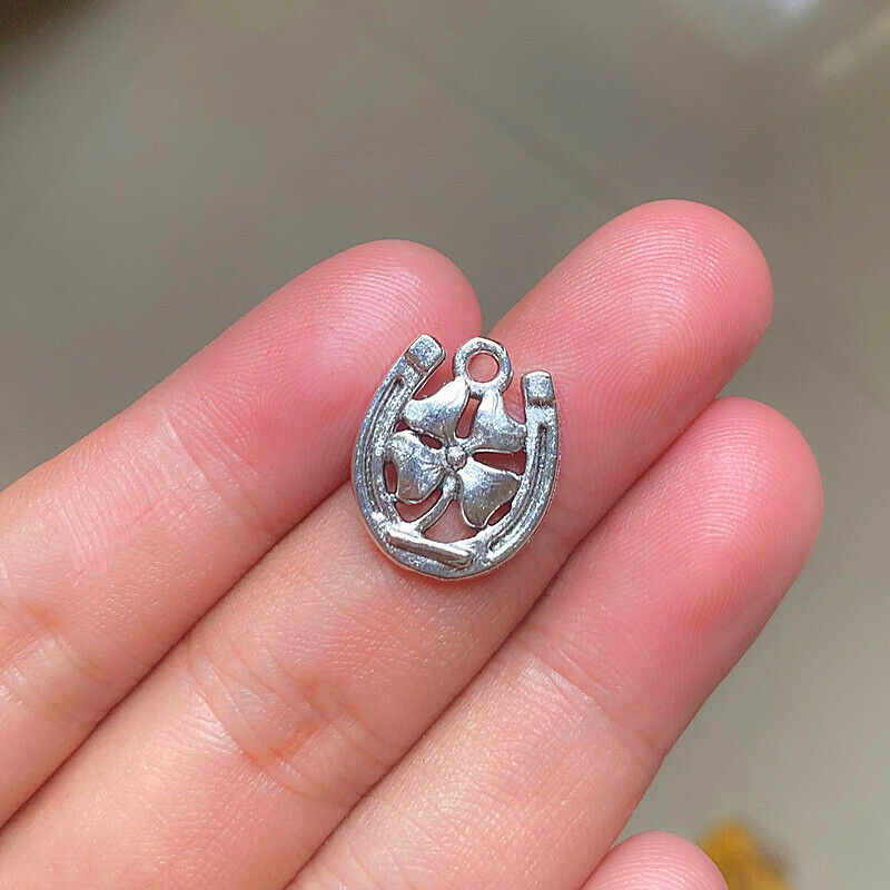 Title (ebay affiliate link): 10pcs 18x15mm Horseshoe Lucky Clover Charms Antique Silver Tone Jewelry Making