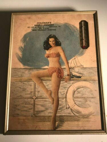 Title (ebay affiliate link): 1950''s Vintage Pinup Girl advertising thermometer Girl on Yacht
