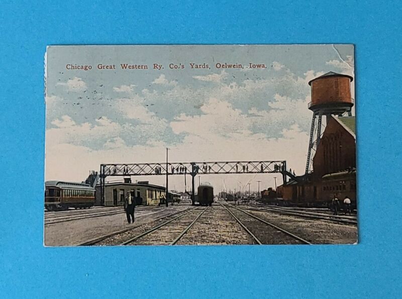 Title (ebay affiliate link): 1915 Vintage Oelwein Iowa Chicago Western Railway Railroad Depot Yard Postcard!