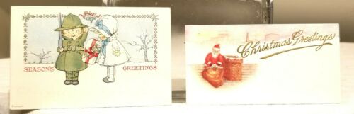Title (ebay affiliate link): Girl giving World War I Soldier Boy Presents. Santa Claus. Two USA Gift Tags.