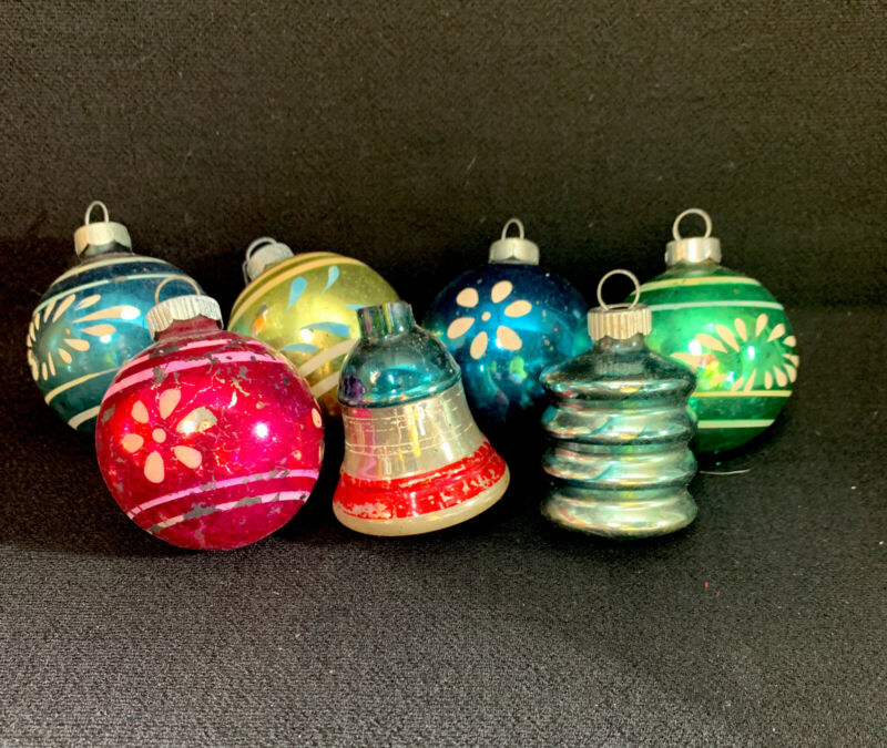 7 Antique Mercury Glass Teardrop & Round Christmas Ornaments Stencil Paint