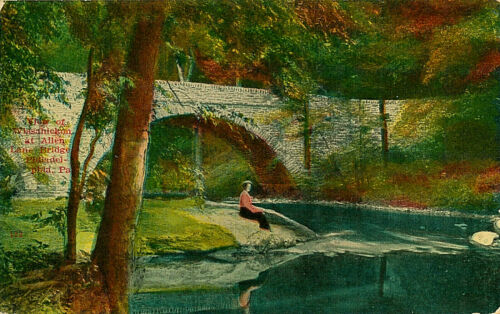 Title (ebay affiliate link): VIEW OF WISSAHICKON AT ALLEN LANE BRIDGE, PHILADELPHIA, PA. WOMAN ON ROCK.