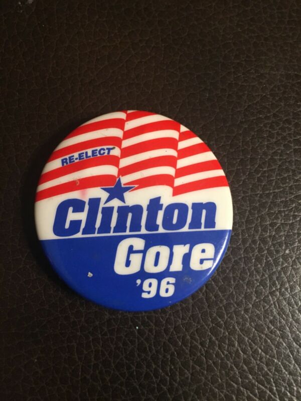 Title (ebay affiliate link): 1996 Re-Elect Bill Clinton Al Gore Presidential Campaign Pinback Button 2.25"
