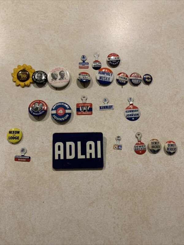 Lot of Vintage Presidential Campaign Buttons, Pinbacks. Kennedy/Dewy/Goldwater +
