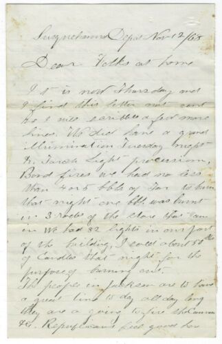 11-12-1868 SUSQUEHANNA AREA LETTER MENTIONING TORCH LIGHT PROCESSION