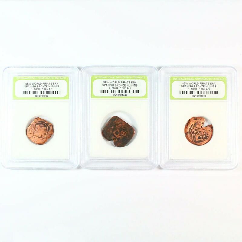 Title (ebay affiliate link): 3 Pirate Era - 1600''s Early America Spanish Bronze Cobs Exact Lot Shown 3387