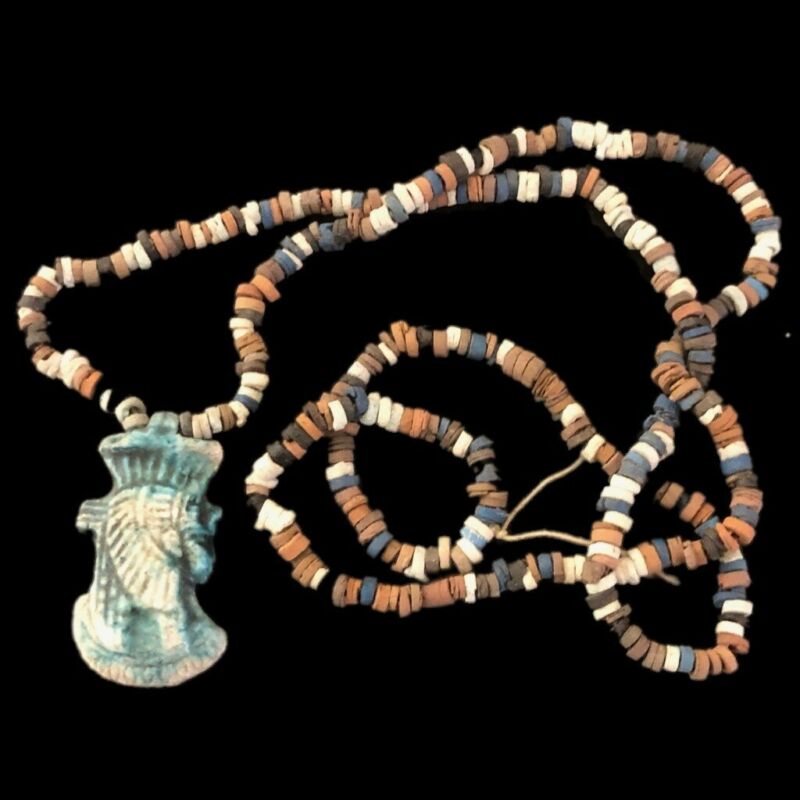 Title (ebay affiliate link): ANCIENT EGYPTIAN RESTRUNG BEAD NECKLACE WITH AMULET LATE PERIOD 332 BC (1)