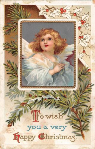 Title (ebay affiliate link): Pine Bough & Holly by Beautiful Angel-Old Christmas PC-Clapsaddle Art?-Ser. 1192