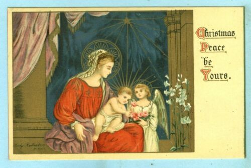 Vintage, Raphael Tuck, "Christmas Peace be Yours", Mary and Baby JESUS, Angel...