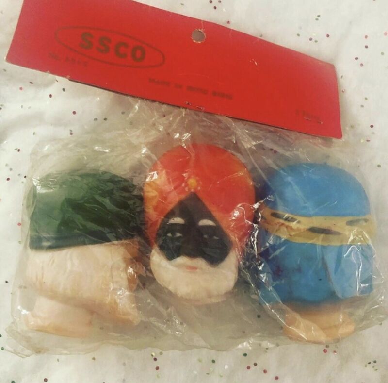 Vintage Craft Wood Rubber Wise Men Doll 3 Heads Japan