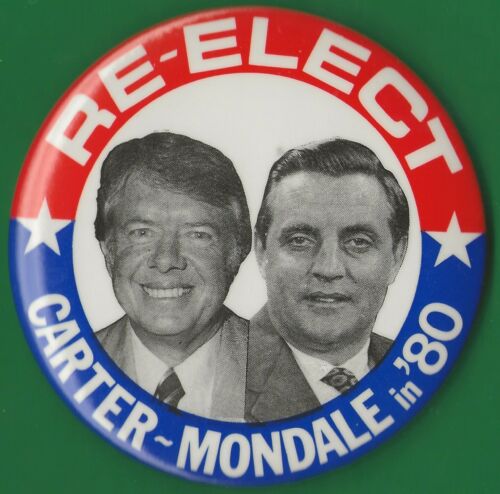 Title (ebay affiliate link): 1980 Jimmy Carter & W Mondale 3.5" / "Re-Elect" Presidential Campaign Button
