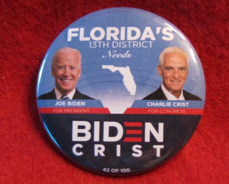 Title (ebay affiliate link): Numbered Joe Biden Charlie Crist Florida #42 of 100 Political Button Pin FL
