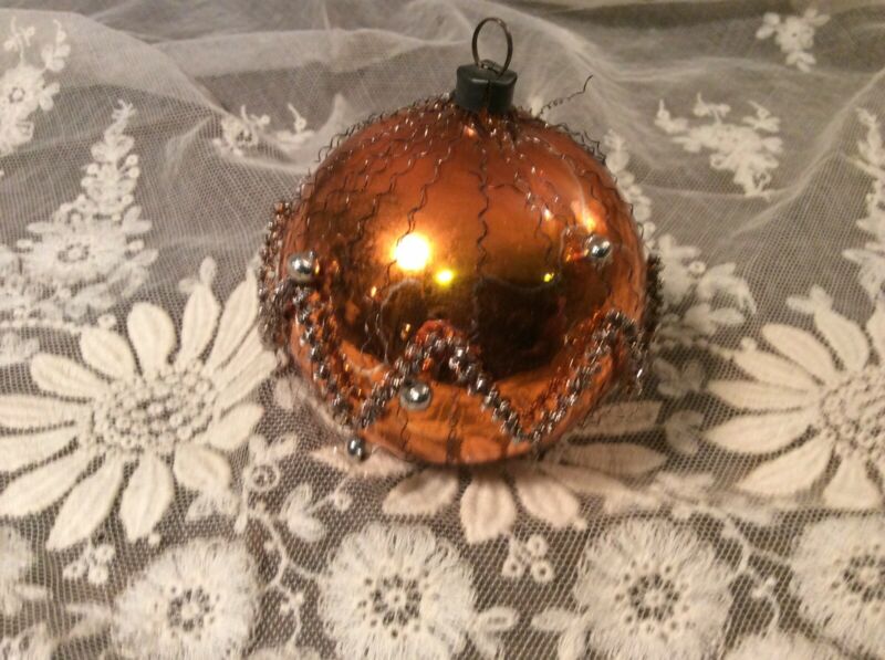 Antique Victorian Mercury Glass Wire Wrapped Ball Ornament