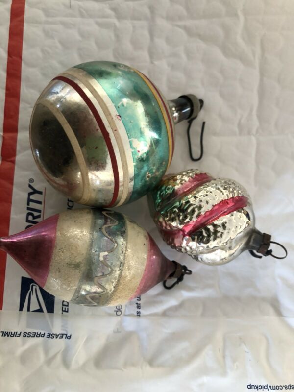 ANTIQUE GERMAN HAND BLOWN CHRISTMAS ORNAMENTs Lot Of 3
