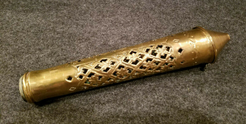 Antique Vintage Moroccan Style Pierced Brass Threaded Tube Thing?