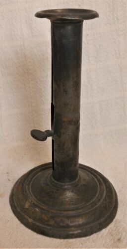 Good 19th century Iron Push-up Candlestick, Nice Base Detail