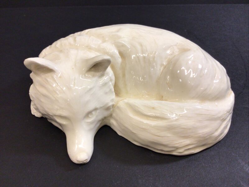 Signed Anderson 1986 ENGLISH CREAMWARE POTTERY Sleeping Fox