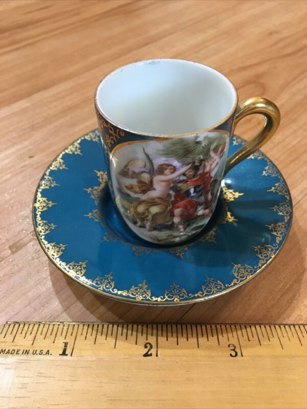 Title (ebay affiliate link): Vintage Turquoise or Prussian Blue/Gold Demitasse Tea Cup & Saucer, Beehive Mark