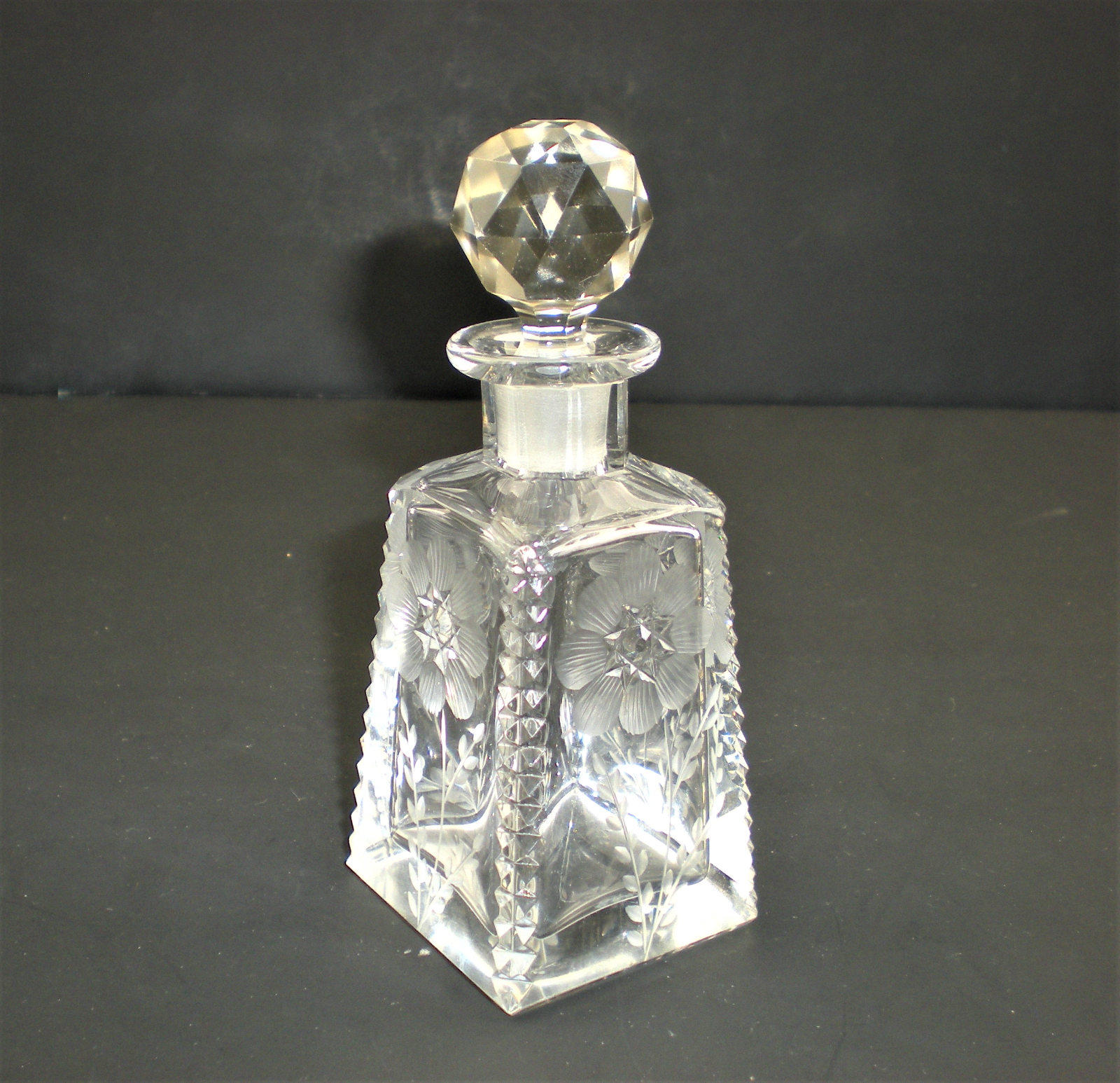 Lovely Victorian Cut Glass Perfume Bottle Floral Pattern Turn of the Century