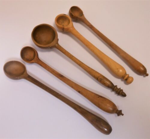 5 Good Antique Miniature Turned Wood Measuring Or Science Spoons