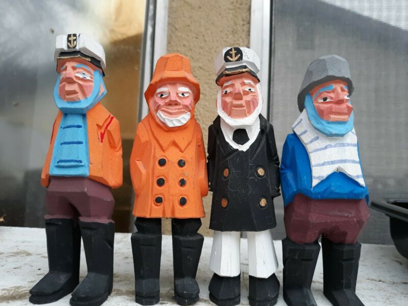 Title (ebay affiliate link): Vintage Nautical Hand Carved Sailor Figurines Set Statues Wooden Captain Sailors