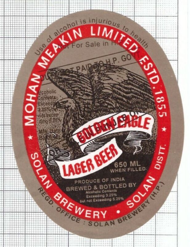 Title (ebay affiliate link): INDIA Solan Brewery Mohan Meakin Lim. Golden Eagle beer label B006 055