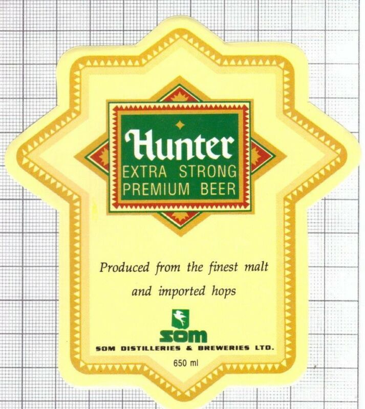 Title (ebay affiliate link): INDIA Som Distilleries & Breweries Raisen Hunter Extra beer label B006 087