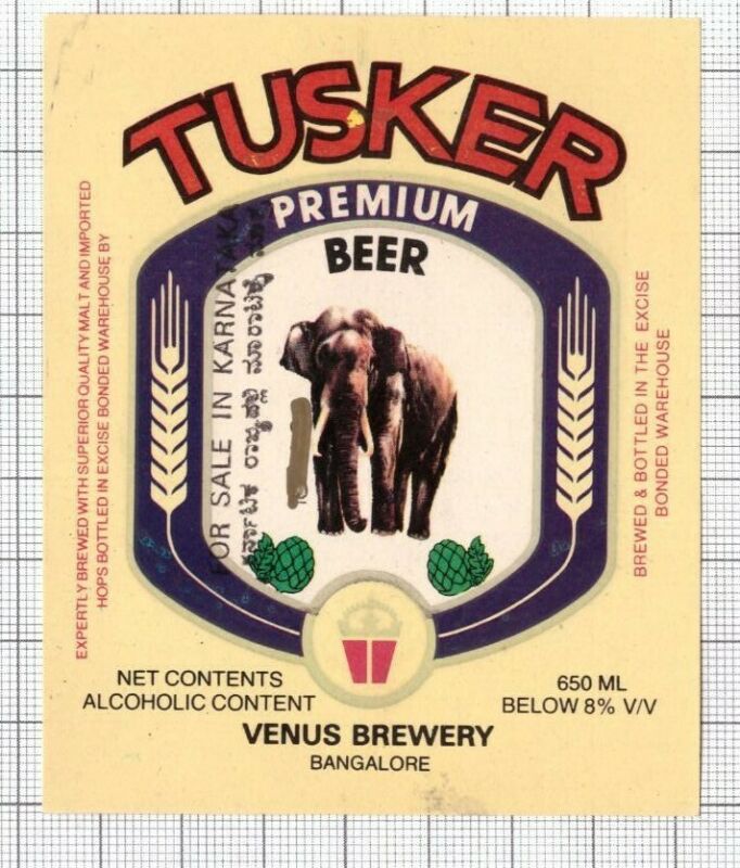 Title (ebay affiliate link): INDIA Venus Brewery Tusker elephant beer label B006 006