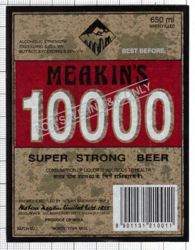 Title (ebay affiliate link): INDIA Solan Brewery Mohan Meakin Lim. 10000 strong beer label B006 039