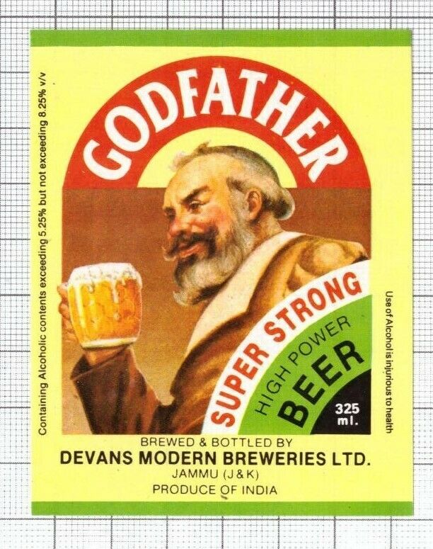 Title (ebay affiliate link): INDIA Devans Modern Breweries Jammu Godfather strong beer label B006 049