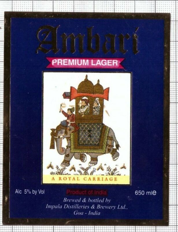 INDIA Impala Distillery & Brewery Goa Ambari elephant beer label B006 018