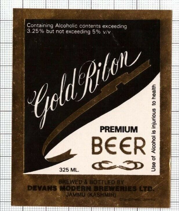 Title (ebay affiliate link): INDIA Devans Modern Breweries Jammu Golden Ribon beer label B006 048