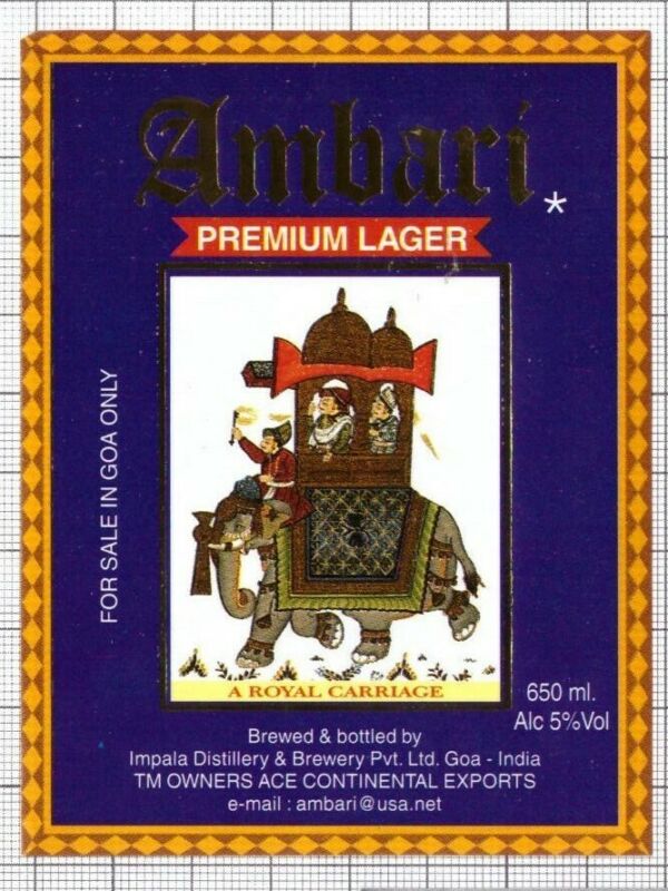 INDIA Impala Distillery & Brewery Goa Ambari elephant beer label B006 010