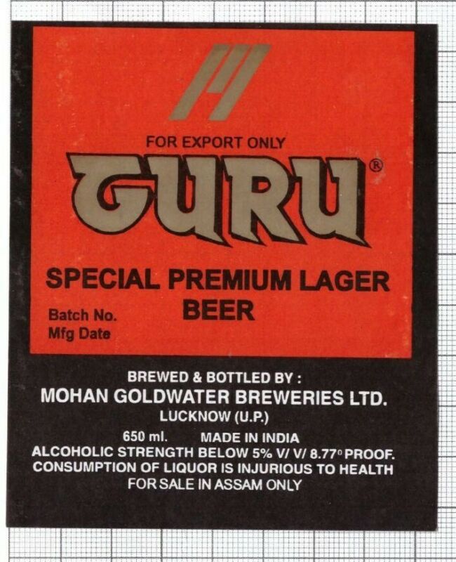 Title (ebay affiliate link): INDIA Mohan Goldwater Breweries Guru - beer label B006 076