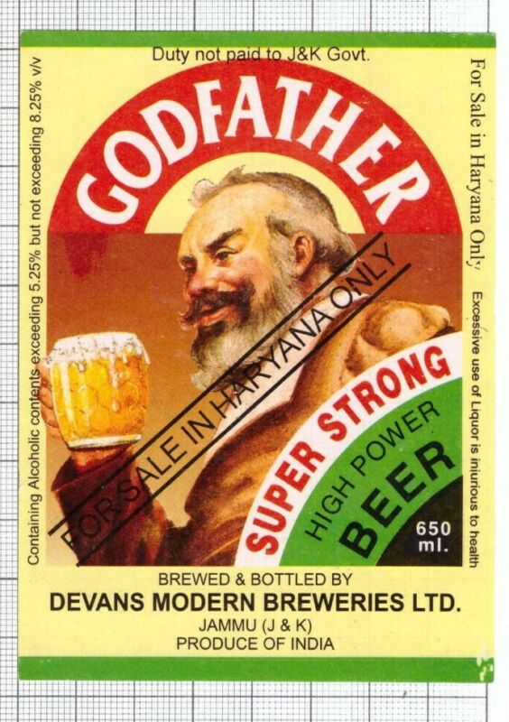Title (ebay affiliate link): INDIA Devans Modern Breweries Jammu Godfather strong beer label B006 053