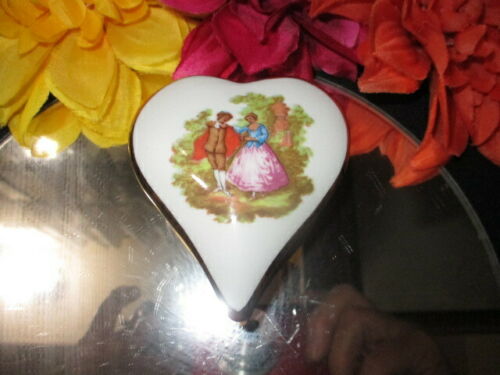 Title (ebay affiliate link): STASH TRINKET BOX LOVE STORY BY LIMOGES PORCELAIN HEART SHAPED HUNTER GREEN BASE
