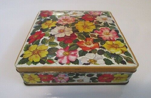 Vintage 1960s Huntley & Palmers Floral Biscuit Tin Made in England 6-1/4"