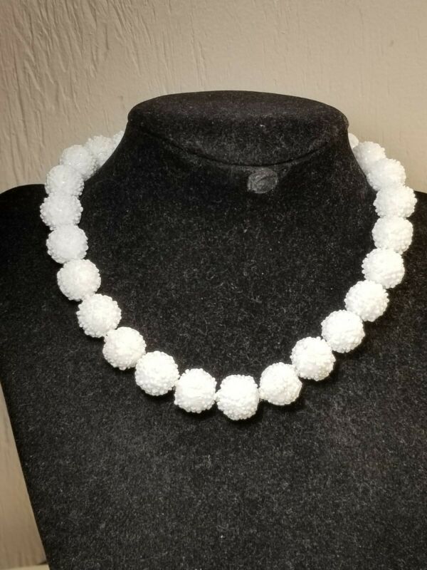 Title (ebay affiliate link): Rare Vtg White Frit Covered Milk Glass Bead Choker Necklace Hand Knotted. #5988