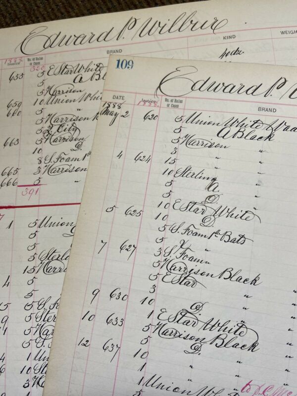 Antique Paper 1888 Ledger Of Wadding Co. 2 Pages