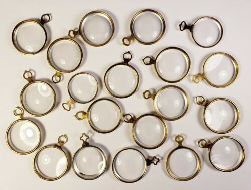 Lot of 20 antique thick trial lenses optical test lens pendants. Concave lenses.
