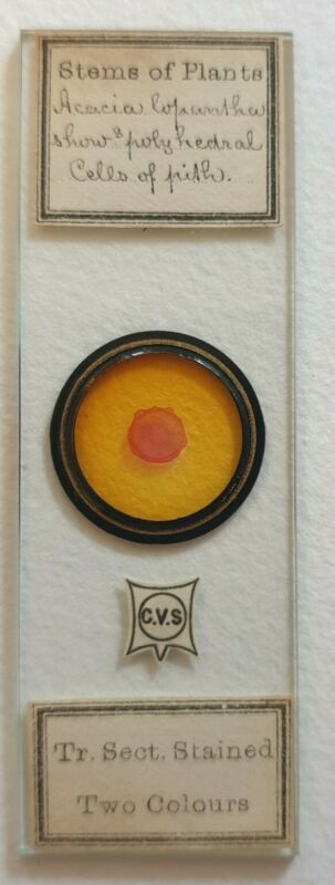 Title (ebay affiliate link): FINE ANTIQUE BOTANICAL MICROSCOPE SLIDE ACACIA STEM .BY C.V.SMITH.
