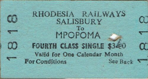 Title (ebay affiliate link): Railway tickets Rhodesia RR Salisbury to Mpopoma fourth class single 1978