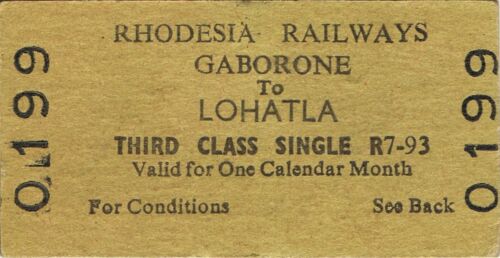 Title (ebay affiliate link): Railway tickets Botswana RR Gaborone to Lohatla third class single