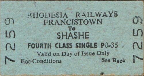 Railway tickets Botswana RR Francistown to Shashe fourth class single 1978