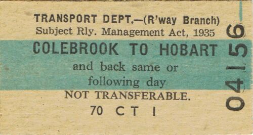 Title (ebay affiliate link): Railway tickets TGR Colebrook to Hobart one class return unused