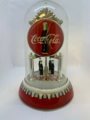 Title (ebay affiliate link): Coke Cola Domed Clock Coke-Cola bottle W/spinning Coke-Cola Bottles
