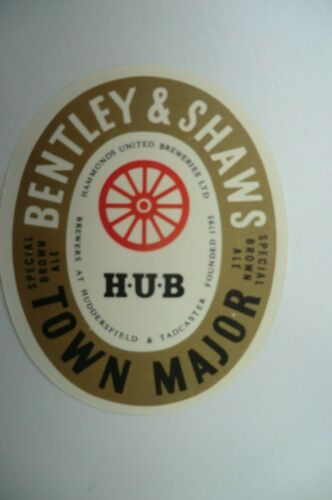 MINT BENTLEY & SHAWS HUDDERSFIELD TADCASTER TOWN MAJOR BREWERY BOTTLE LABEL