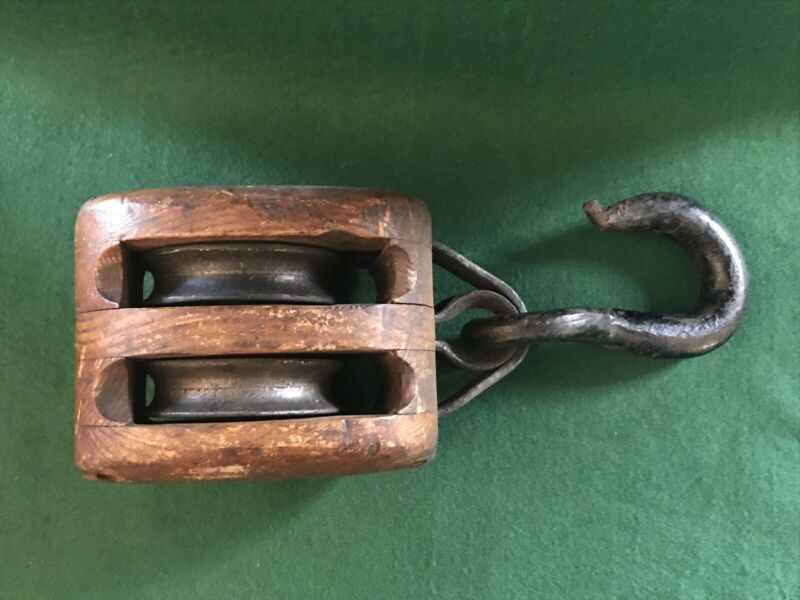 From Lyric Theater Balt. Antique Vintage Cast Iron Wood Pulley Block and Tackle